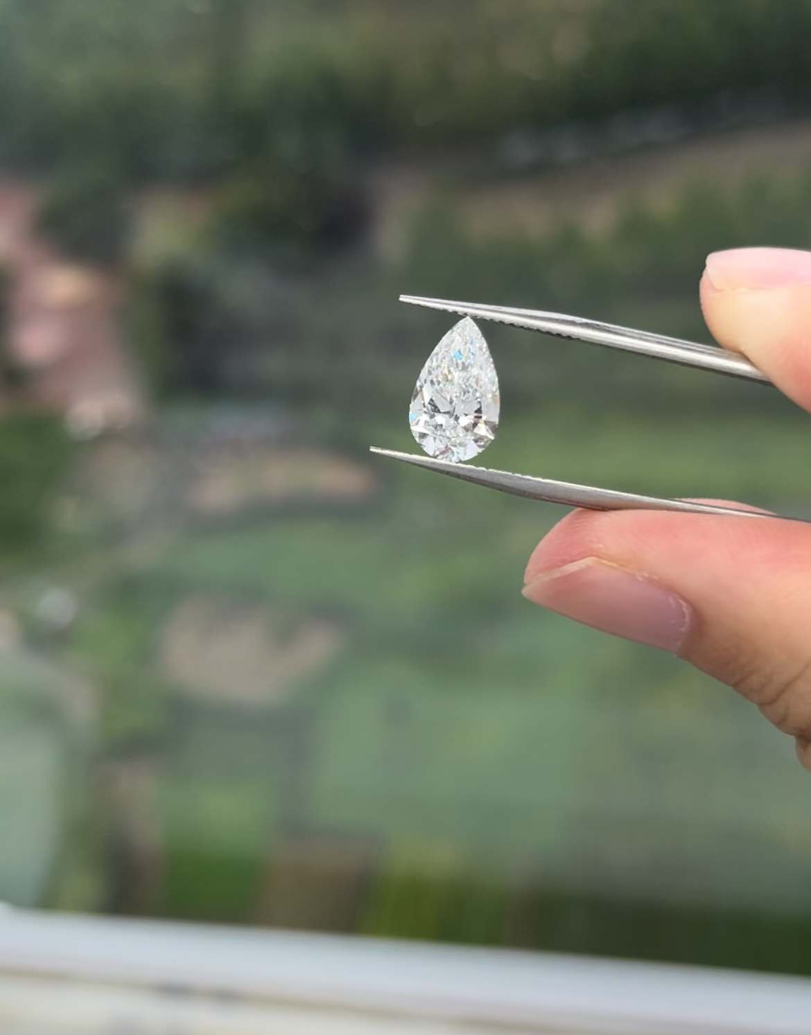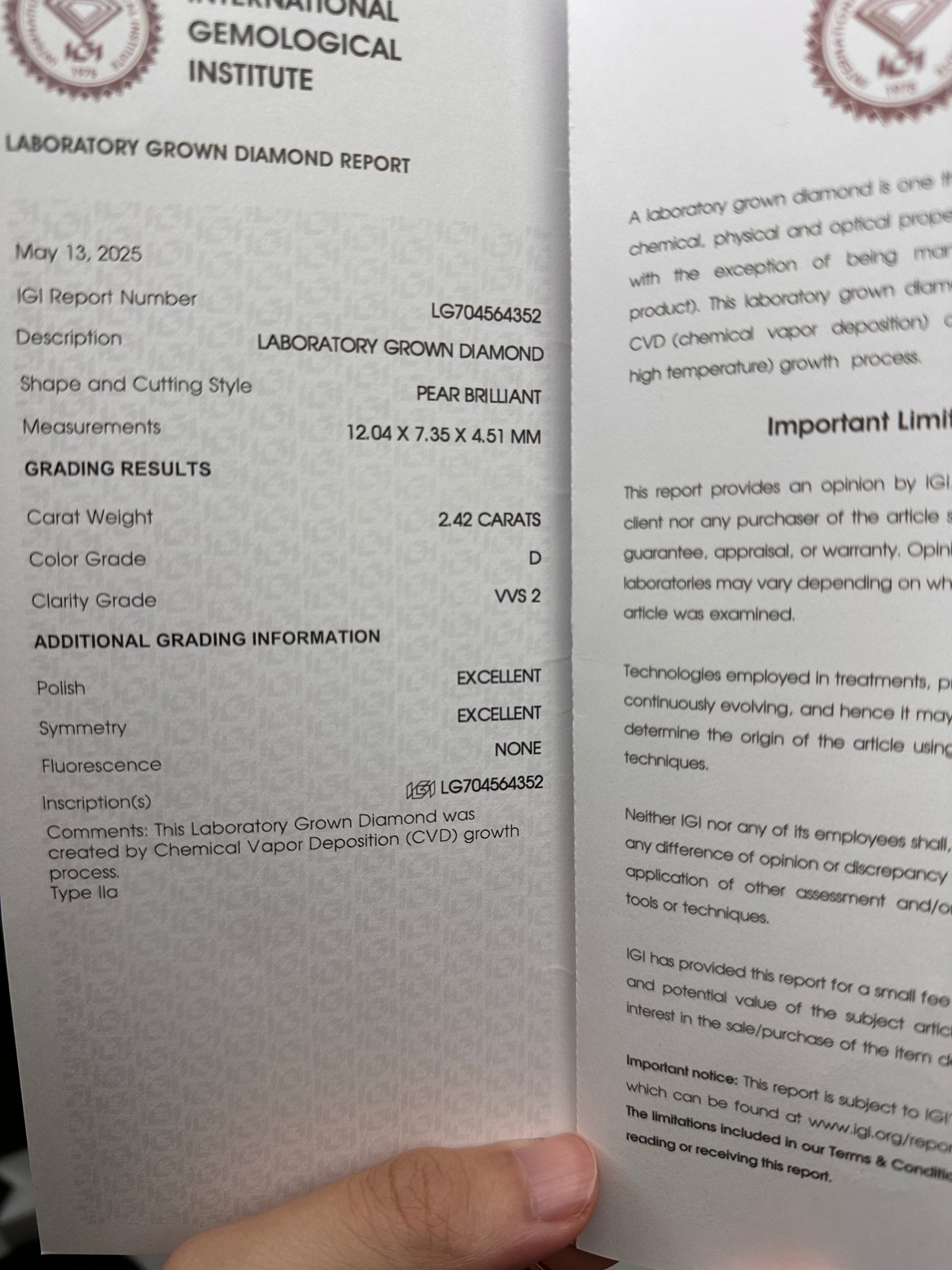 18K yellow gold ring with 2.42ct E VVS2 pear diamond US5